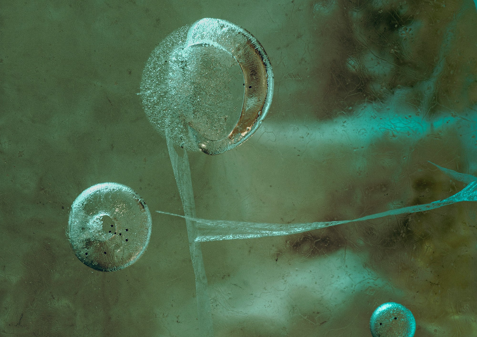 Незримо и незаметно для большинства людей, живущих в спешке, существуют микромиры, мини цивилизации. Они не привлекают нашего внимания, потому что мы разучились видеть. Настолько все кажется привычным и обыденным. И все проходят мимо. Я стараюсь ухватить взглядом и камерой красоту в привычном. Так родились эти фотографии. Ледяные миры озер Севера могли бы многое рассказать о своих обитателях, что находятся вдали от людей. Но они безмолвны. Я готова кричать людям — ну посмотрите, как же это завораживает. Для всех это ледяной городок для Новогодних праздников, а для меня целый мир абстракции. Скоро будет шумно от детских и взрослых голосов, и никто не услышит молчаливый призыв — «Мы здесь, посмотрите, сколько в нас таинственной жизни». И она закончится с приходом весны.